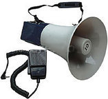 20 Watt Leistung, 33 cm Länge, mit Sirene. Reichweite ca. 250 m. Lieferung mit Batterien.